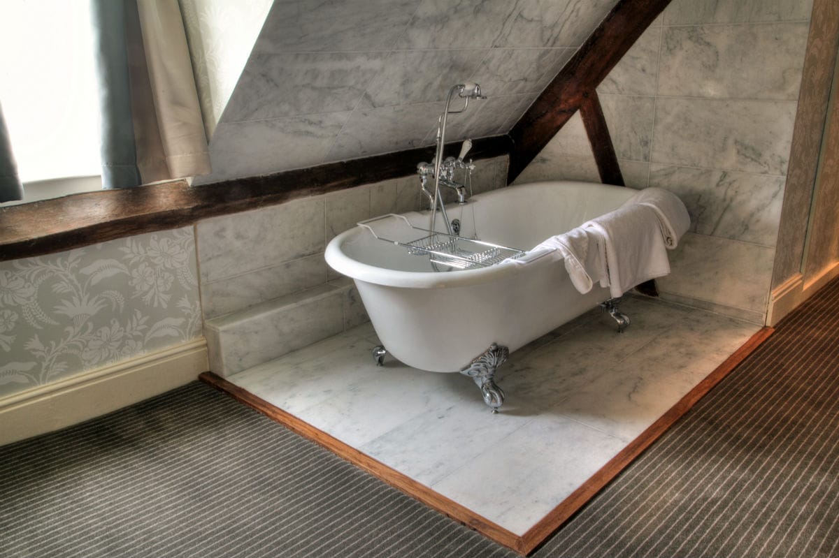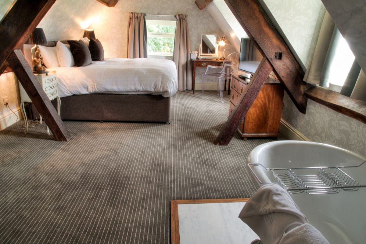 Typical Room within Hasgar Cottage. The price indicator is per bedroom. The property has two very large courtyard suites and 1 courtyard double room all with roll top baths and stunning country views.