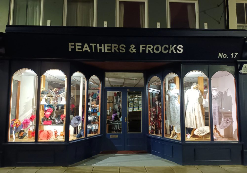 Feather & Fayre, 17, Gloucester Road, Ross-on-Wye, HR9 5BU. A Mother of Bride Groom and guest wear specialist size 10 -28. The shop stocks an extensive range of Millinery. They are open by Appointment only and every customer has one to one service.