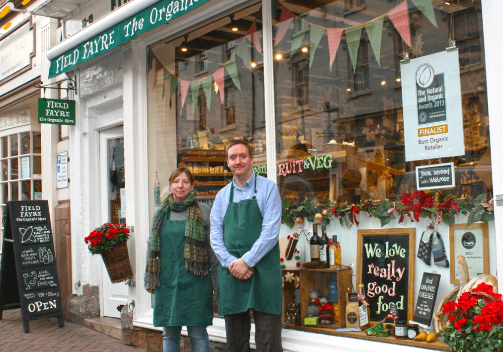 Field & Fayre, 18-19 Broad Street, Ross-on-Wye, HR9 7EA. In the heart of Ross-on-Wye the store is packed full of organic fruit and veg, poultry, beef, pork and lamb, milk, cheese and butter. As well as a wide range of organic groceries including flours, grains, cereals, pasta, soups, herbs and spices, honey, oils and dried fruits. They also stock a great range of organic champagnes, wines and beers, plus coffees and loose teas. The groceries range is full of gluten-free, dairy-free, raw food and healthy options, and the health & beauty department stocks the best natural brands and organic toiletries.